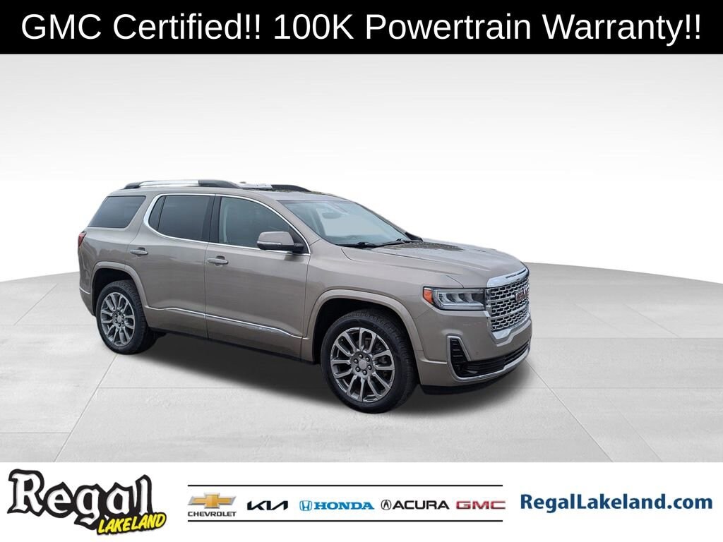 GM CERTIFIED, CERTIFIED BY CARFAX- NO ACCIDENTS AND ONE OWNER!, FWD, Jet Black Leather.GMC Certified Pre-Owned Details:* Limited Warranty: 12 Month/12,000 Mile (whichever comes first) from certified purchase date* Warranty Deductible: $0* Vehicle History* 172 Point Inspection* 24 months/24,000 miles (whichever comes first) Certified Pre-Owned Scheduled Maintenance Plan and 3 days/150 miles (whichever comes first) Vehicle Exchange Program. SiriusXM 3-month trial subscription* Transferable Warranty* Roadside Assistance* Powertrain Limited Warranty: 72 Month/100,000 Mile (whichever comes first) from original in-service date2023 GMC Acadia Denali Certified. Light Stone Metallic FWD 9-Speed Automatic 3.6L V6 SIDI19/27 City/Highway MPGCome test drive this vehicle @ our Regal Chevrolet / Kia location 1105 Bartow Rd. Lakeland FL 33801 (Beside Lakeland High School) To Schedule an appointment or for additional info call (863) 591-5890 /(863-591-5045)