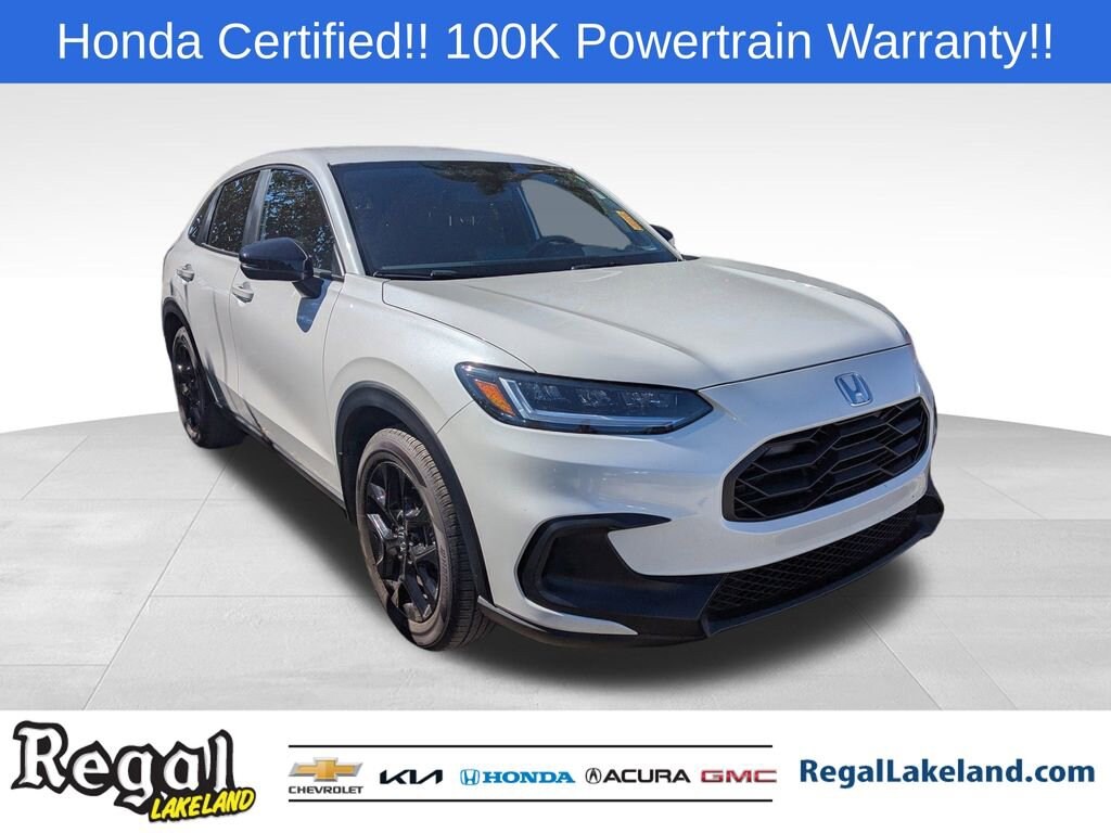 HONDA CERTIFIED, CERTIFIED BY CARFAX- NO ACCIDENTS AND ONE OWNER!, AWD - NEVER WORRY ABOUT THE WEATHER!.Certification Program Details: 150-point mechanical and appearance inspection 7-year/100,000-mile Powertrain warranty from the vehicle's original in-service date 12 months/12,000 miles (whichever comes first) non-powertrain warranty from the original warranty expiration date or, if the original warranty has expired, from the Honda Certified Used Cars purchase date. $0 deductible CARFAX® Vehicle History ReportTM Warranty is transferable Roadside Assistance XM Satellite Radio 3 trial months of service Price does not include $1495.00 Certification2025 Honda HR-V Sport Certified. Platinum White Pearl AWD CVT 2.0L I4 DOHC 16V i-VTECRecent Arrival! Odometer is 12255 miles below market average! 25/30 City/Highway MPG Priced below KBB Fair Purchase Price!Come test drive this vehicle @ our Regal Honda Acura GMC location 2615 Lakeland Hills Blvd Lakeland fl. 33805 (Beside Detroit Tiger Stadium). To Schedule an appointment or for additional info call (863) 204-4505 / (863) 265-1272).
