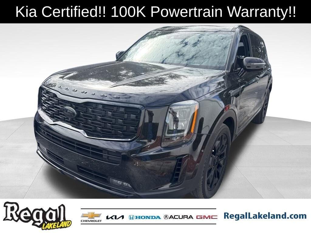KIA CERTIFIED, CERTIFIED BY CARFAX- NO ACCIDENTS AND ONE OWNER!, AWD - NEVER WORRY ABOUT THE WEATHER!.Kia Certified Pre-Owned Details:* Warranty Deductible: $50* Roadside Assistance* Transferable Warranty* Includes Rental Car and Trip Interruption Reimbursement. 3 month Sirius trial subscription* Limited Warranty: 12 Month/12,000 Mile (whichever comes first) Platinum Coverage from certified purchase date* Vehicle History* Powertrain Limited Warranty: 120 Month/100,000 Mile (whichever comes first) from original in-service date* 165 Point Inspection2021 Kia Telluride SX Certified. Black Copper AWD 8-Speed Automatic 3.8L V6 DGI DOHC Dual CVVTRecent Arrival! Odometer is 27191 miles below market average!Come test drive this vehicle @ our Regal Chevrolet / Kia location 1105 Bartow Rd. Lakeland FL 33801 (Beside Lakeland High School) To Schedule an appointment or for additional info call (863) 591-5890 /(863-591-5045)Awards:* JD Power Automotive Performance, Execution and Layout (APEAL) Study, Initial Quality Study (IQS) * JD Power Initial Quality Study (IQS)