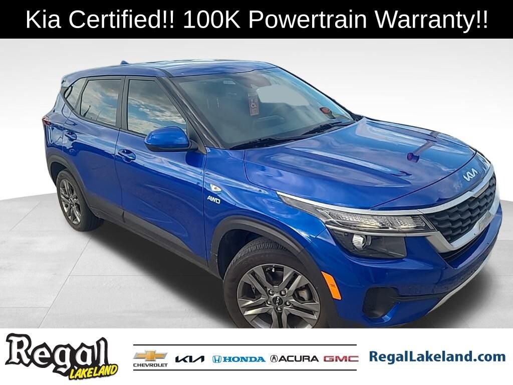 KIA CERTIFIED, CERTIFIED BY CARFAX- NO ACCIDENTS AND ONE OWNER!.Kia Certified Pre-Owned Details:* Powertrain Limited Warranty: 120 Month/100,000 Mile (whichever comes first) from original in-service date* Warranty Deductible: $50* Transferable Warranty* Roadside Assistance* Includes Rental Car and Trip Interruption Reimbursement. 3 month Sirius trial subscription* Limited Warranty: 12 Month/12,000 Mile (whichever comes first) Platinum Coverage from certified purchase date* Vehicle History* 165 Point Inspection2022 Kia Seltos LX Certified. Neptune Blue AWD CVT 2.0L I4 MPIRecent Arrival! Odometer is 900 miles below market average! 27/31 City/Highway MPGCome test drive this vehicle @ our Regal Chevrolet / Kia location 1105 Bartow Rd. Lakeland FL 33801 (Beside Lakeland High School) To Schedule an appointment or for additional info call (863)944-1491 /(863-591-5045)